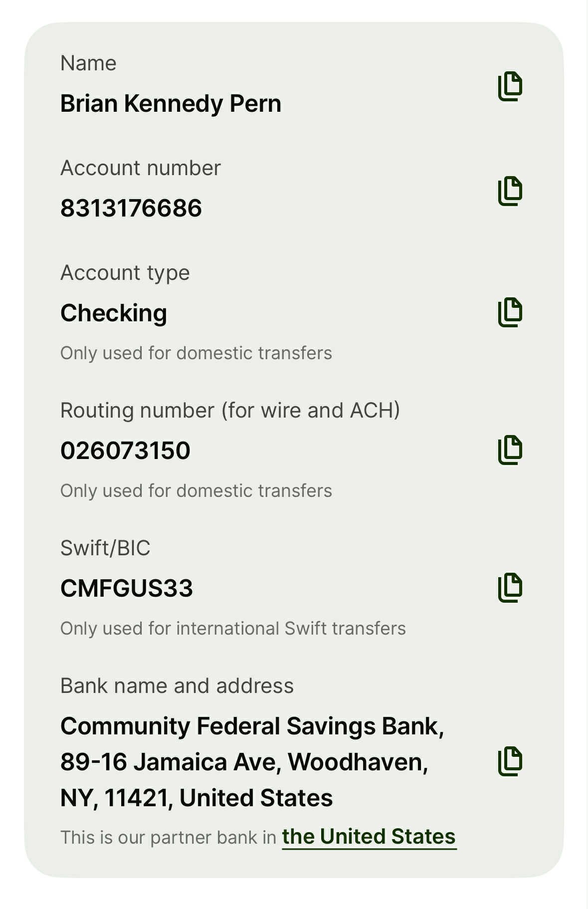 Wise Transfer: You can also use Wise to transfer your donation to the account details below. This is a local USD account with minimal fees. Please be sure to select USD as the currency.